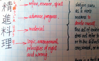 The word ryouri - loosely translated in English as "cooking" is composed of two characters "ryou" means material. And "ri" means "logic, arrangement, principles of right and wrong.